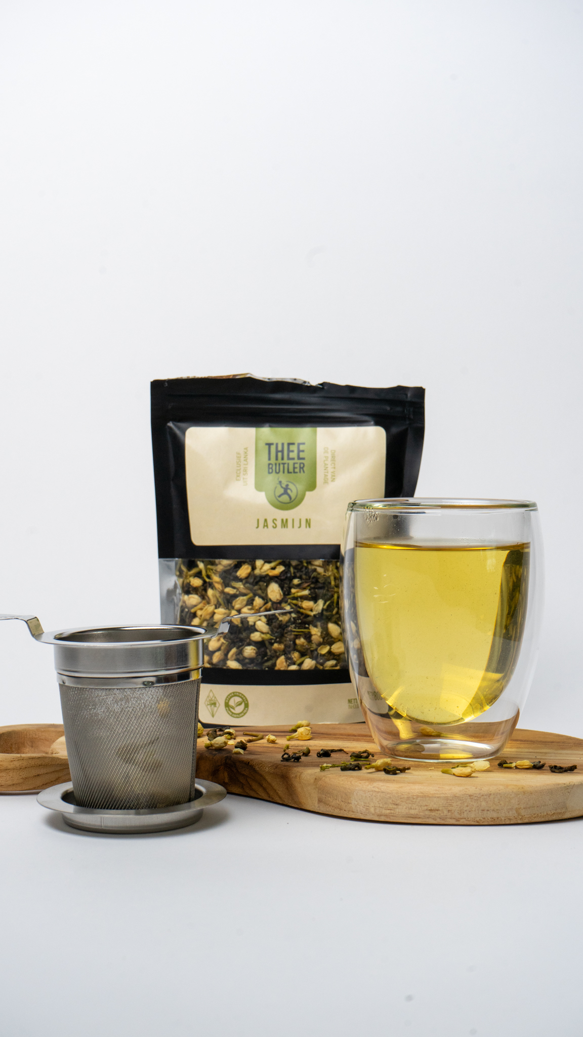 Jasmijn doet de zon schijnen. Die heerlijke geur van jasmijnbloesem doet ons denken aan zonovergoten zomerdagen. Daar dromen we maar wat graag naar weg tijdens een heerlijk kopje thee. Jij ook? Proef dan de Jasmijn thee van Theebutler eens. Deze groene thee heeft een verfijnde smaak en de onweerstaanbare geur van jasmijn.
