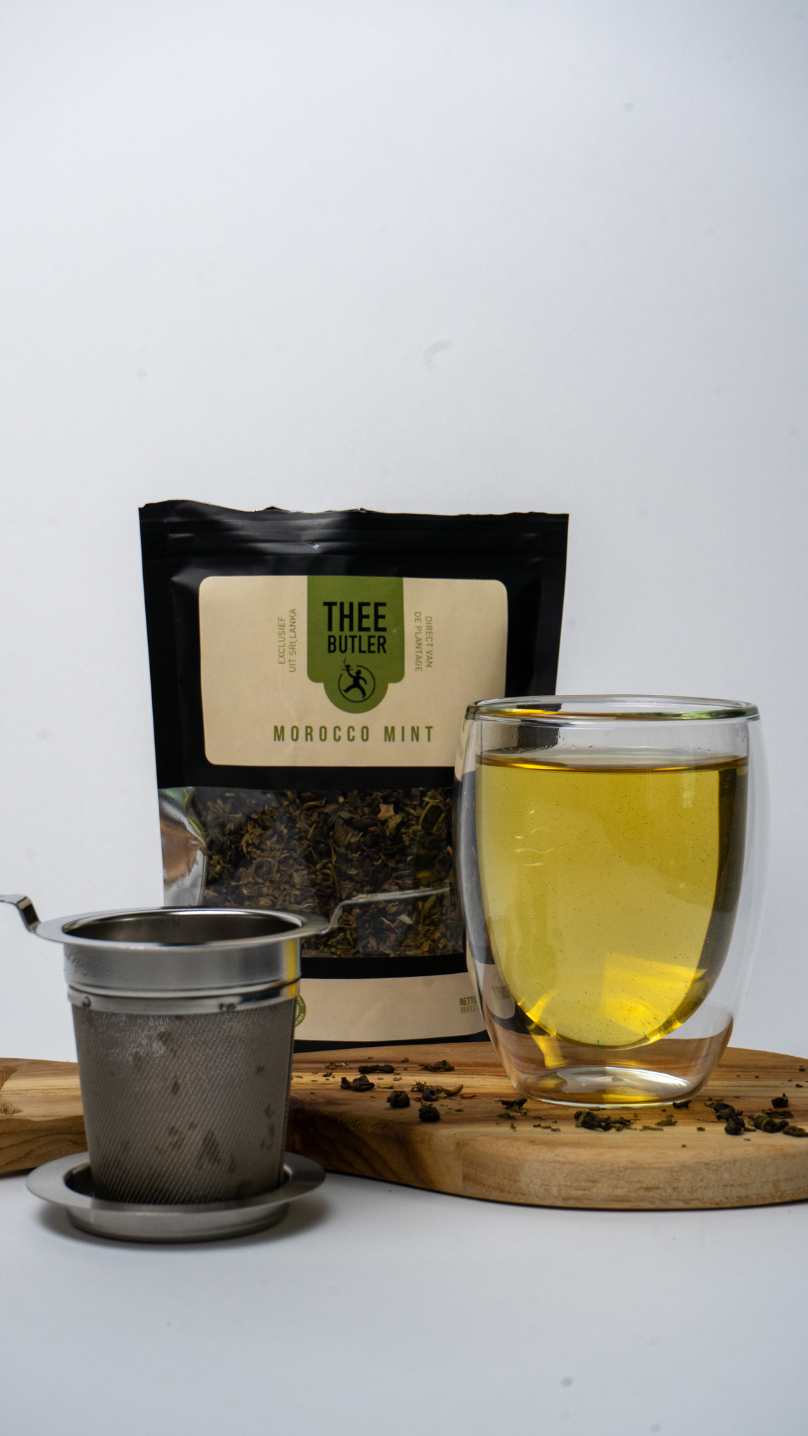 Oppeppertje nodig? Je wordt op je wenken bedient door de Morocco mint. Aan deze verfijnde groene thee hebben we wilde pepermunt toegevoegd. Het zorgt voor een zachte frisse smaak. Genoeg dus om je echt even te laten genieten van je theemomentje én je weer fit te krijgen voor de rest van de dag.