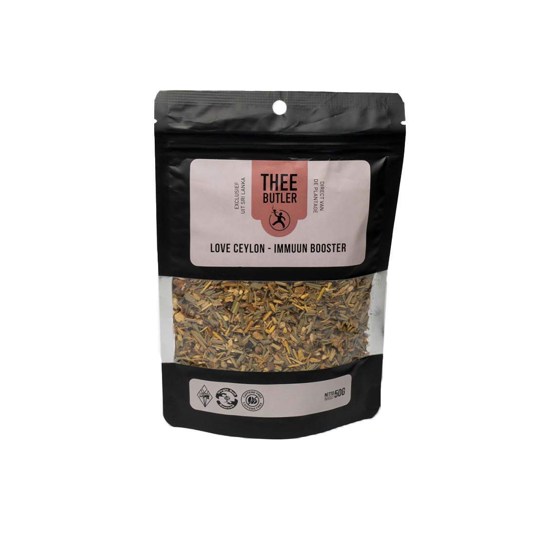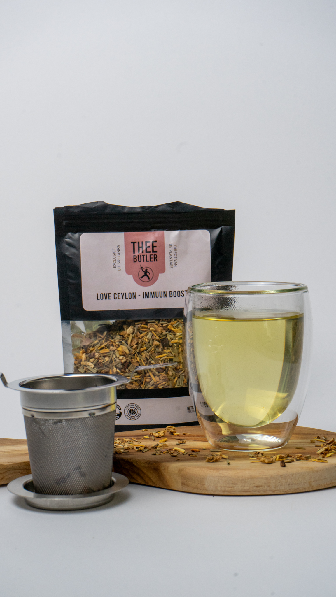 | Ingrediënten | Citroengras, gember, triphala, zoethout, natuurlijke smaakstoffen van vanille en amandel |