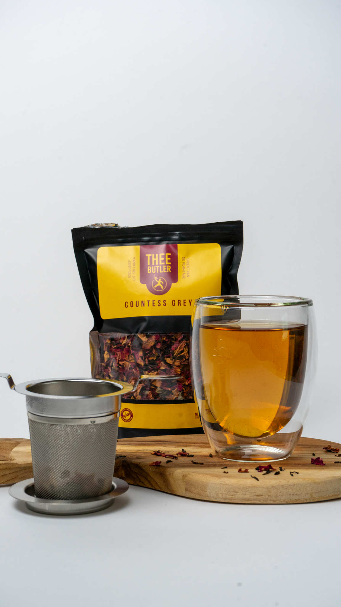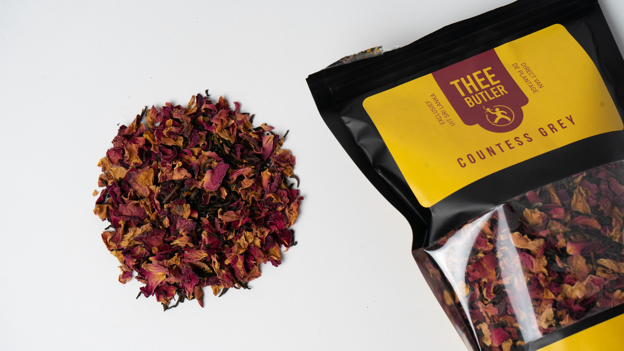 | Ingrediënten | Zwarte thee (FBOP), rozenblaadjes (28,5%), Earl Grey aroma (1,5%) |